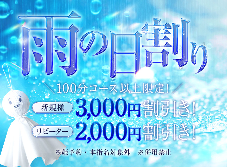・当店セラピストをご指名の場合、ご指名のセラピストの体調等の理由で欠勤や遅刻等をしてしまう場合がございます。その場合キャンセルもしくはフリーでのご案内となります事を予めご了承いただきますようお願い申し上げます。